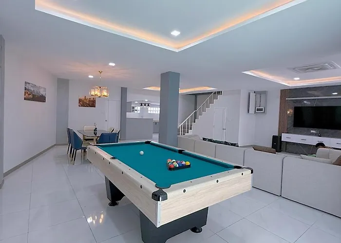 Deze gesitueerde in Pattaya Anjia Villa Pattaya bevindt zich op 19 minuten loopafstand van de Thepprasit Markt en biedt toegang tot verschillende toeristische plekken in de buurt. In de 5-badkamer villa kunnen gasten ontspannen op een terras met een zwembad.
